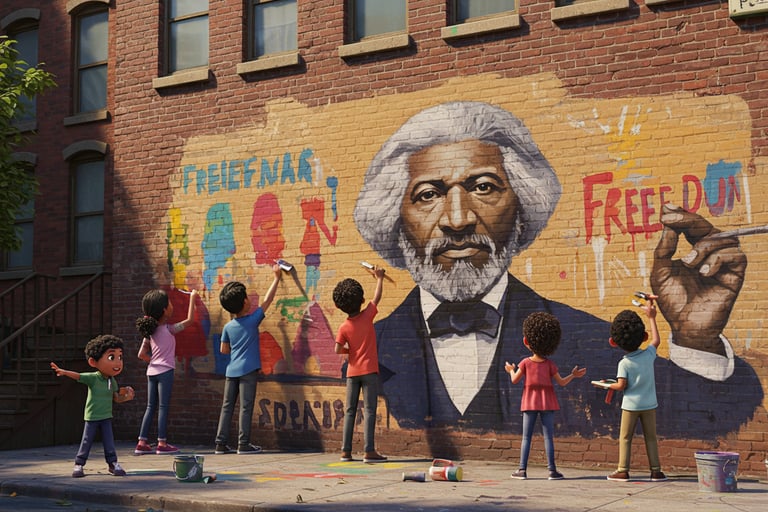 Frederick Douglass was born into slavery in Maryland around 1818, though he never knew his exact birthday, choosing to celebrate on February 14th. As a young boy, he was separated from his mother and lived with his grandmother. Even though it was against the law to teach enslaved people to read, Frederick was determined to learn. He secretly taught himself by tricking white children into giving him lessons and by observing others. This secret learning was a superpower that helped him understand the world and dream of a different life. At about 20 years old, Frederick bravely escaped slavery by disguising himself as a sailor and traveling north to freedom. Once free, Frederick changed his last name to Douglass and became an amazing speaker and writer. He shared his powerful story of being enslaved, which helped many people understand how unfair slavery was. He even wrote a bestselling book about his life called "Narrative of the Life of Frederick Douglass, an American Slave." Frederick didn't just fight against slavery; he also believed that all people, including women, should have equal rights. He started his own newspaper, The North Star, to spread messages of freedom and justice far and wide. His courage and intelligence made him a hero who advised presidents and inspired countless others to work for a better world.